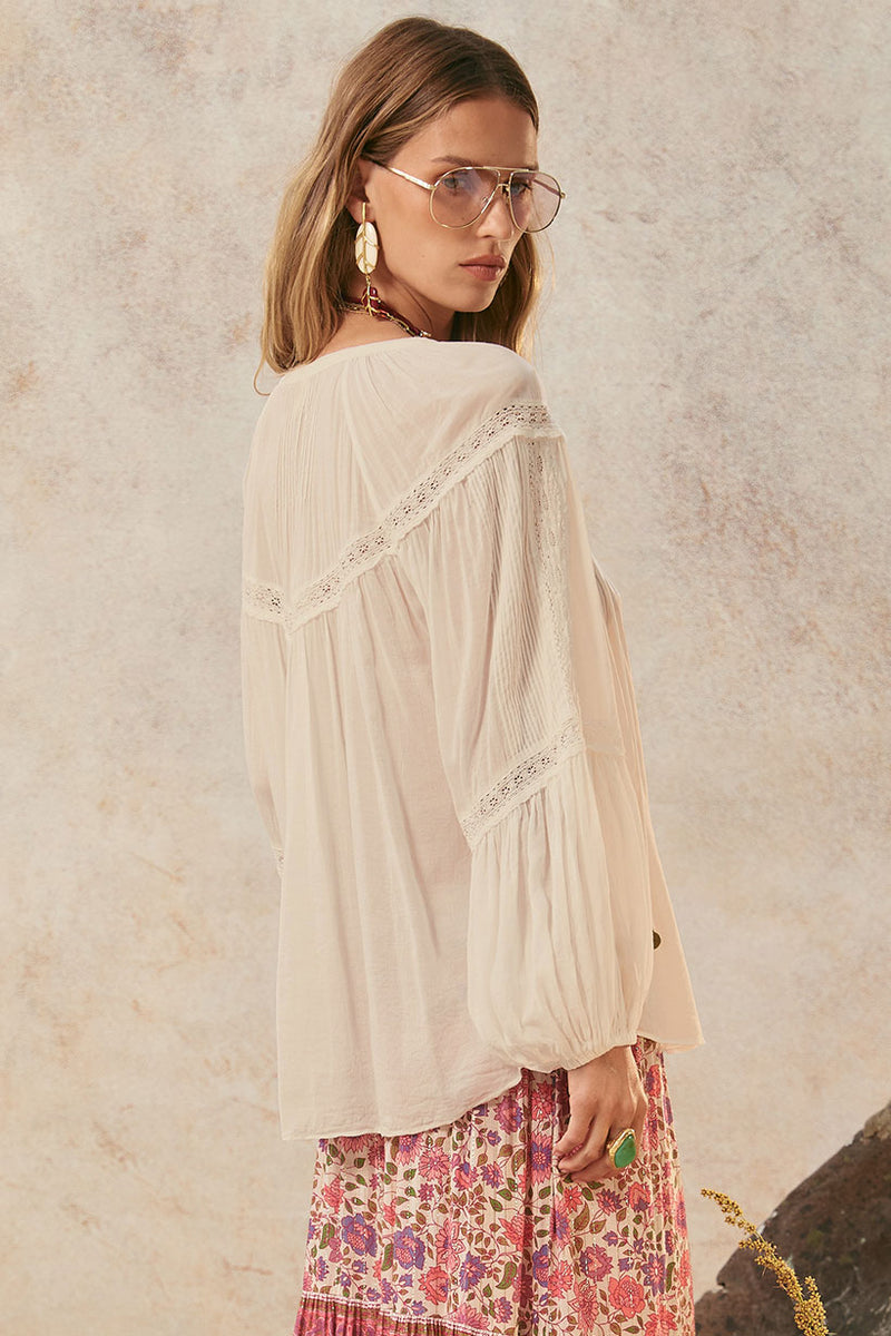 The Teodora Blouse is a playful and unique addition to your wardrobe. Made from sustainable and eco-friendly LENZING™ ECOVERO™ Viscose and Organic Cotton, it features captivating details like raglan sleeves, pintuck and lace panels, and a button front with neck ties. Elastic cuffs add a stylish touch while ensuring a comfortable fit. Perfect for casual or dressed-up occasions, this blouse exudes fun.