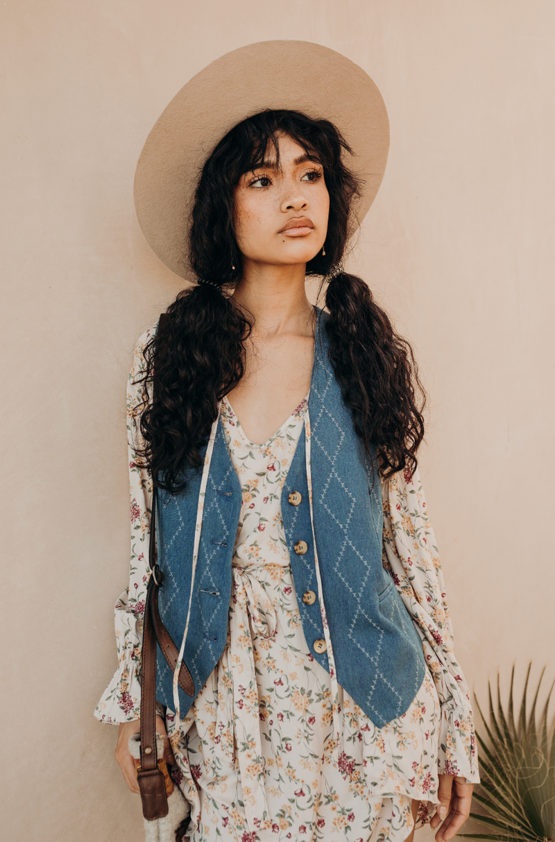 An easy to wear tunic style dress (can be worn with or without the belt that it comes with) is easy to chuck on, poking effortlessly cute and can be dressed up or down. It’s hidden in seam pockets are an added bonus and a little extra length at the back provides you with more coverage. Ties at the neck can be worn tied or open.